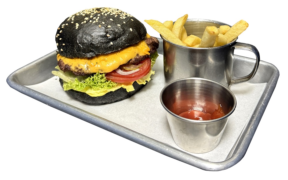 свинина BBQ, сир Дуплет, бекон, картопля фрі, сливочно-часниковий соус.Соус тар-тар, fresh салат, морква по-корейські, маринований огірок з перцем халапеньо